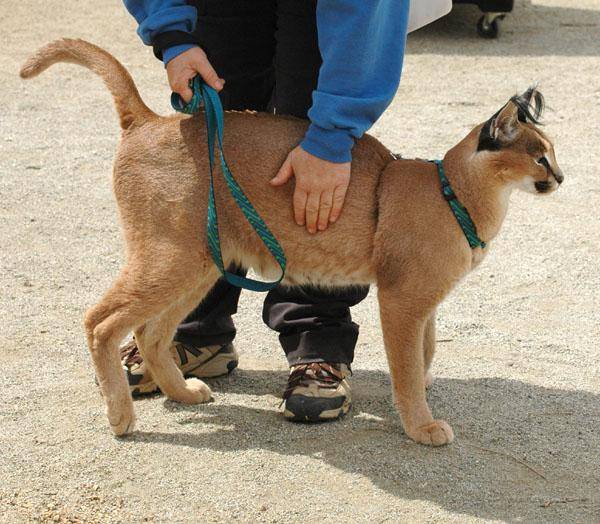 Karakal lako pronalazi zajednički jezik s drugim kućnim ljubimcima. Ako mačku uzmete iz uzgajivačnice u uzrastu od 4 mjeseca, ona će već biti naviknuta na ljude i neće pokazivati agresiju.